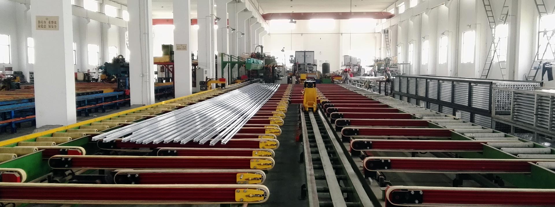 專業生產多種鋁合金型材及制品的企業,已有二十多年的經驗和歷史?,F有鋁型材擠壓設備四套,分別為1800T、1000T、630T、600T擠壓生產配套設備有10m長不銹拋丸機。6m鋁型材表面拋光機,4.5m普拉迪鋁材加工中心,多臺高精度自動切割機,雙頭轉向切割機,備有12m長時效爐。